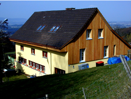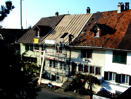 : Fam. Weber, Hombrechtikon Projekt : Dachausbau Umfang : Baugesuch Kantonale Denkmalpflege Beiträge Ausgeführte Arbeiten : Innenausbau Installationen Dach Fasade Fertigstellung : 2001 |